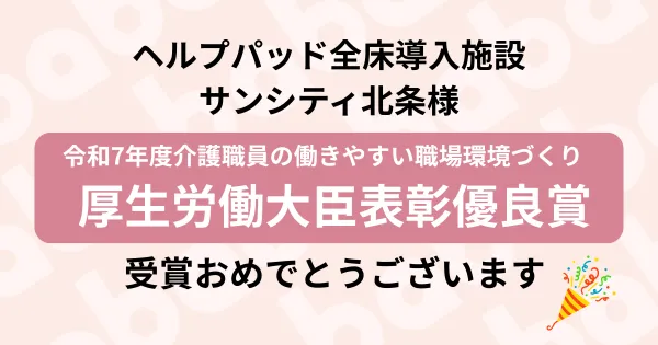 サンシティ北条様が「令和7年度介護職員の働きやすい職場環境づくり 厚生労働大臣表彰優良賞」を受賞されました お知らせ 2025.09.12 -